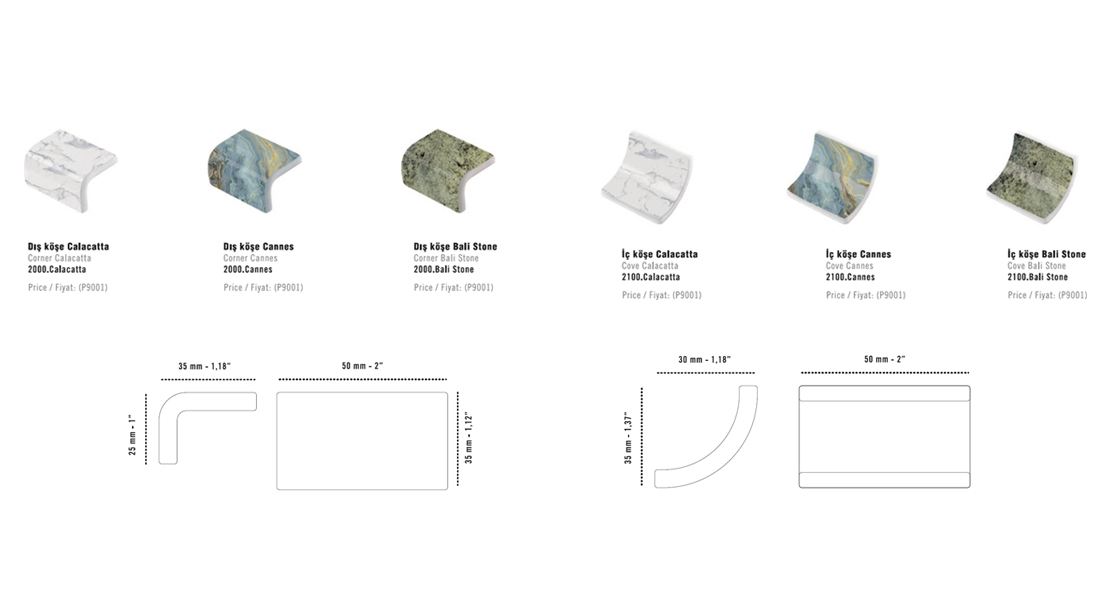 You can complete your projects by using trim parts that match with matte and glossy surface options of Betsan Mosaix products that you can choose from a wide selection.